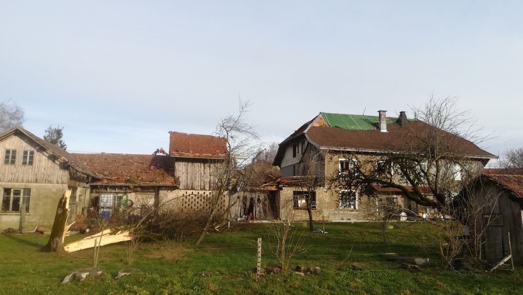 Sinistre tempête provoquant l’effondrement partiel d’une dépendance plus le décrochement des tuiles d’une partie de la toiture de l’habitation. Montant des dommages 235 000€.