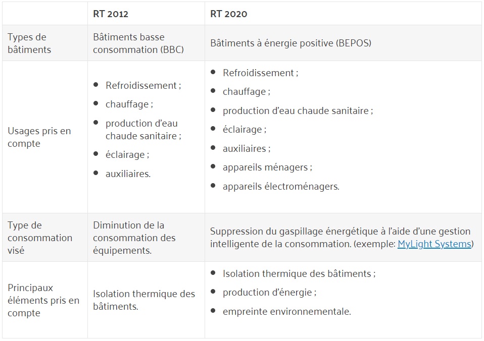 LES PRINCIPAUX POINTS DE DIFFÉRENCIATION ENTRE RT2012 ET RT2020 :